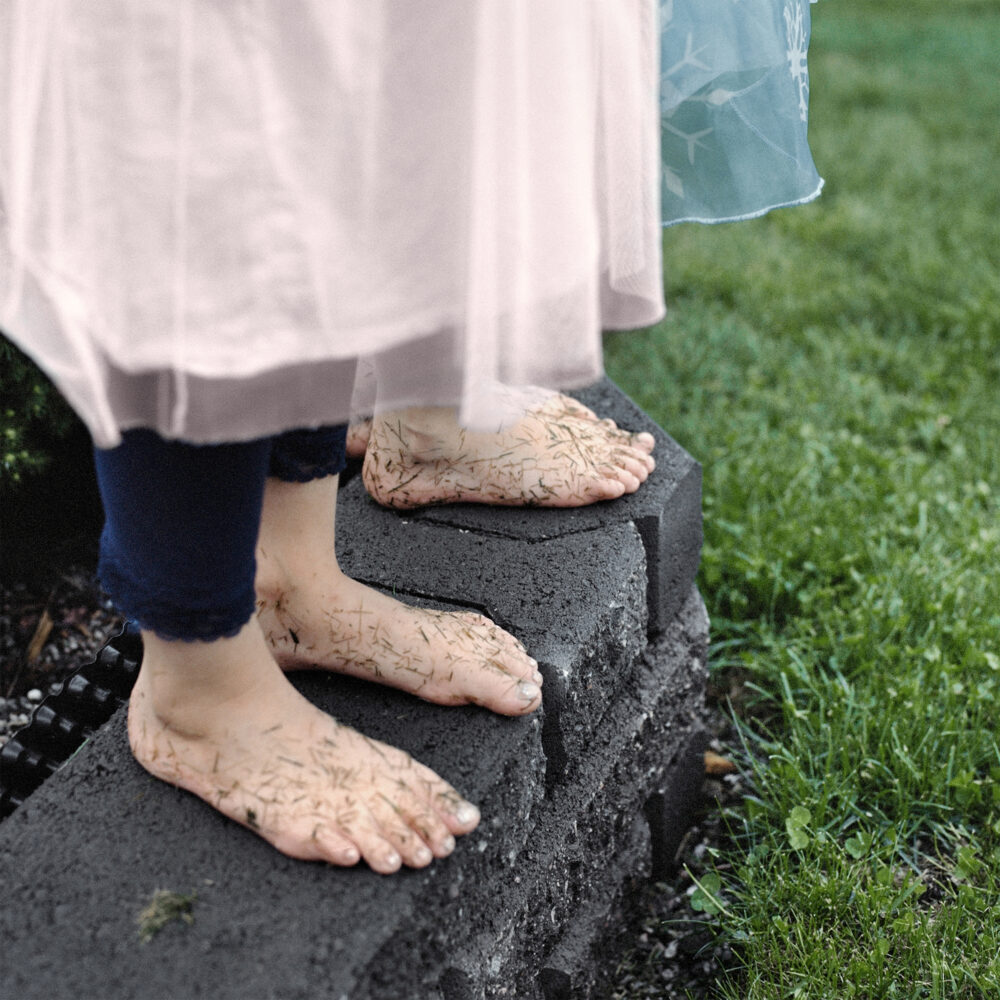 Pärast sauna tiirutasime mina ja mu õde ratastel meie suvila õuel ja värskelt niidetud rohi muutis meie paljad kehad tähniliseks. Nüüd klammerdub rohi meie tütarde varvaste külge.