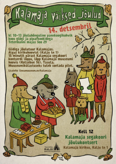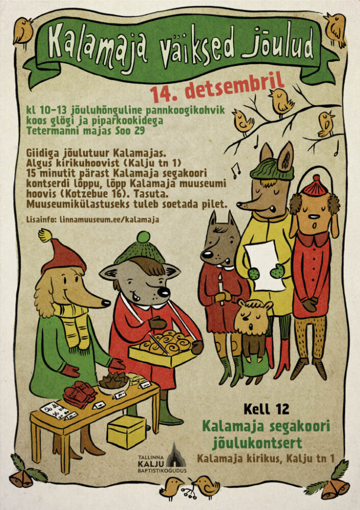 Kalamaja muuseum kutsub kõiki taas osa saama mõnusast jõuluootuse koosviibimisest Kalju kirikus laupäeval, 14. detsembril 2024 kell 10-13. Telliskivi Seltsi ja Kalju Baptistikoguduse algatatud armas ja soe jõuluüritus on järjepidevalt toimunud juba 2012. aastast.
