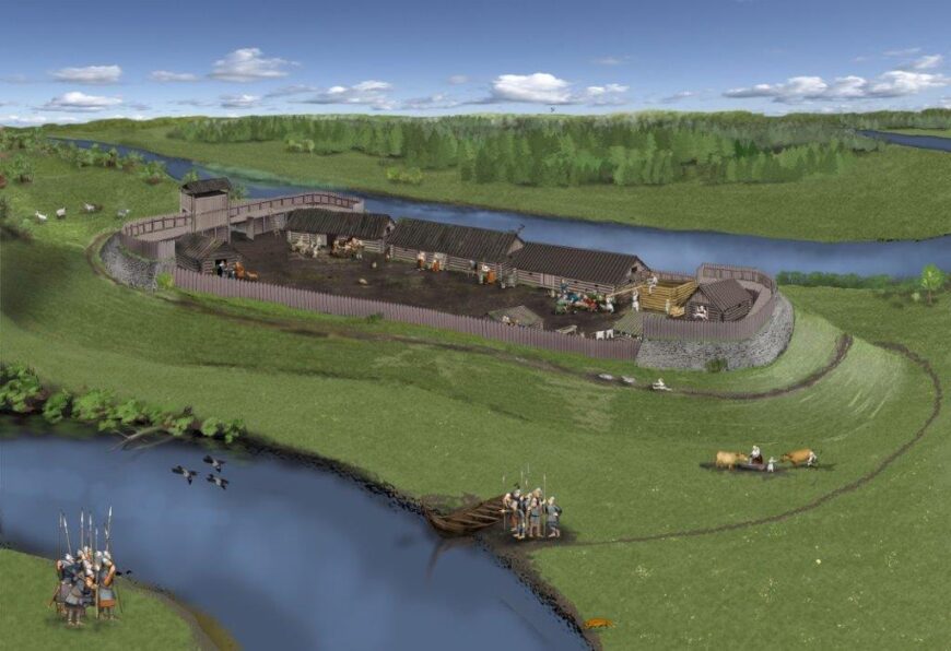 Pildil Iru linnus, rekonstruktsiooni autor kunstnik ja pärandtehnoloog Jaana Ratas.