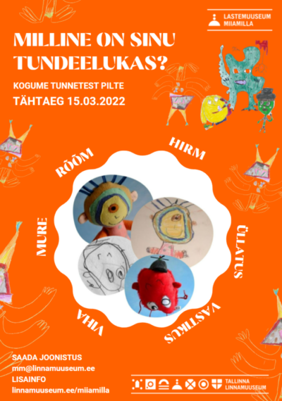 Lase fantaasial lennata ja saada oma tundeelukast joonistus! Vali välja põhitunnetest üks või mitu, joonista pilt ja kirjuta juurde mis tundega tegu on. Laste joonistustest avame 26.03.2022 näituse, milel avamisele on oodatud kõik väiksed kunstnikud koos peredega.