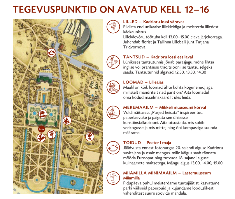 Mängud ja meisterdamine kogu perele muuseumides ja pargis. Osalemine tasuta. Mängude alguspunkt Kadrioru lossi ees.
