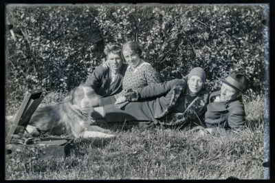 Foto: Grupiportree: grammofoni ja koeraga murul, Tallinna Linnamuuseum.