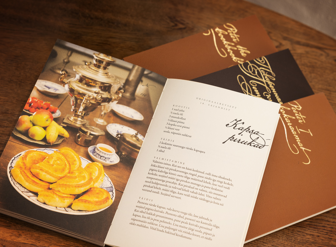 In this 120-page book you’ll find exciting recipes with a multifaceted history, as well as the story of the House of Peter the Great, also known as the ‘old palace’ in Kadriorg.