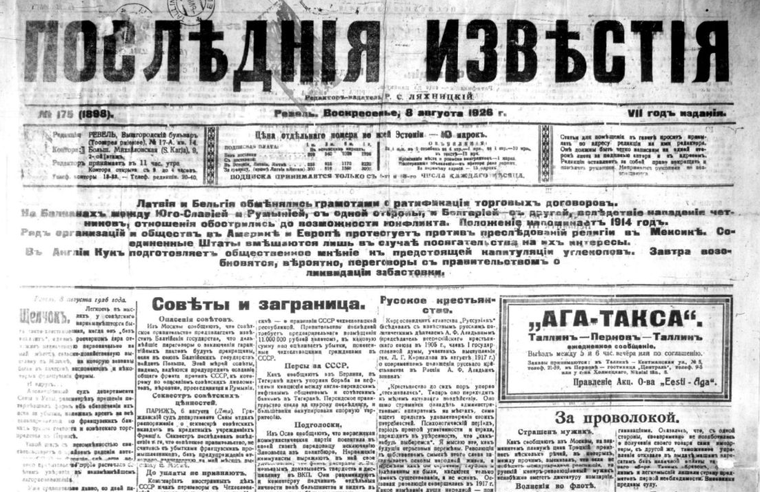 22 апреля в 13.00 состоится последняя лекция „‘Фейковая’ история ‘последнего’ (1920-го) года Гражданской войны в ревельской русской эмигрантской газете «Последние известия»“