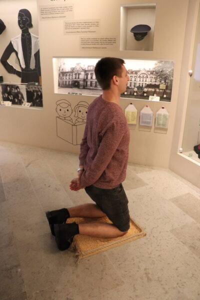 В Таллиннском городском музее можно заказать программы для тех, кто изучает эстонский язык. Подобные занятия посещают в основном старшие группы детских садов с языковым погружением. Учителя зачастую бронируют три-четыре урока на весь учебный год. Несмотря на то, что тематика музея – Средневековье — может показаться сложной для восприятия дошкольниками, благодаря повторным посещениям ребята начинают ориентироваться в музее и, попадая в уже знакомое пространство, вспоминают ход и задания предыдущего музейного урока, что, в свою очередь, помогает вспомнить некоторые слова на эстонском языке. На музейных уроках мы всегда используем реквизит и реплики старинных предметов, которые можно брать в руки или даже примерять. Таким образом, в зависимости от пожеланий учителей и/или уровня владения эстонским языком среди детей, можно повторить названия предметов и прилагательные, а также глаголы – что можно с этим предметом сделать.