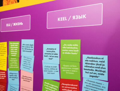 На базе этих встреч художницей Эви Пярн была создана новая часть экспозиции “Лаборатории”, где вы можете ближе познакомиться с нашими гостями и их отношением к идентичности, чувству дома и принадлежности, родному языку и образованию. Эви Пярн расширила визуальное пространство лаборатории и создала новые возможности интерактивного участия для посетителей.