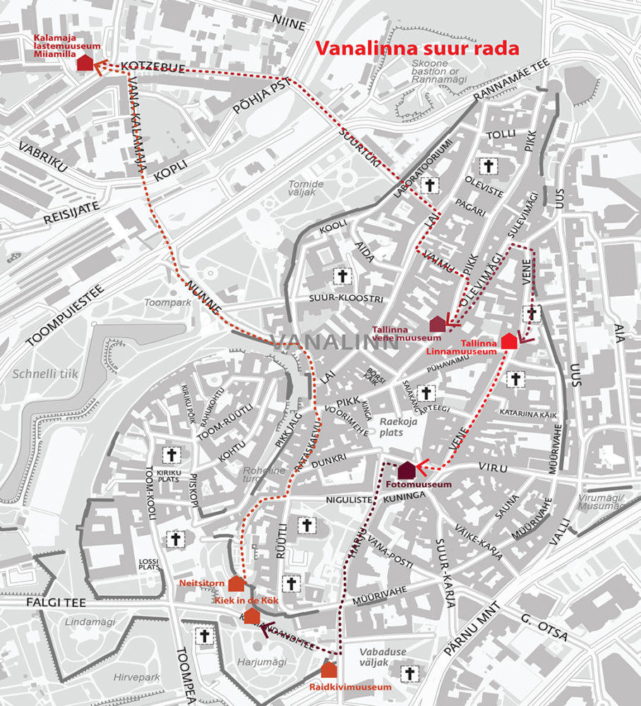 NB! Билет длинного маршрута позволит посетить годовую выставку Городского музея  “100 лет будней”, которая, делая остановки во времени через каждые 10 лет, расскажет о том, куда мы пришли.