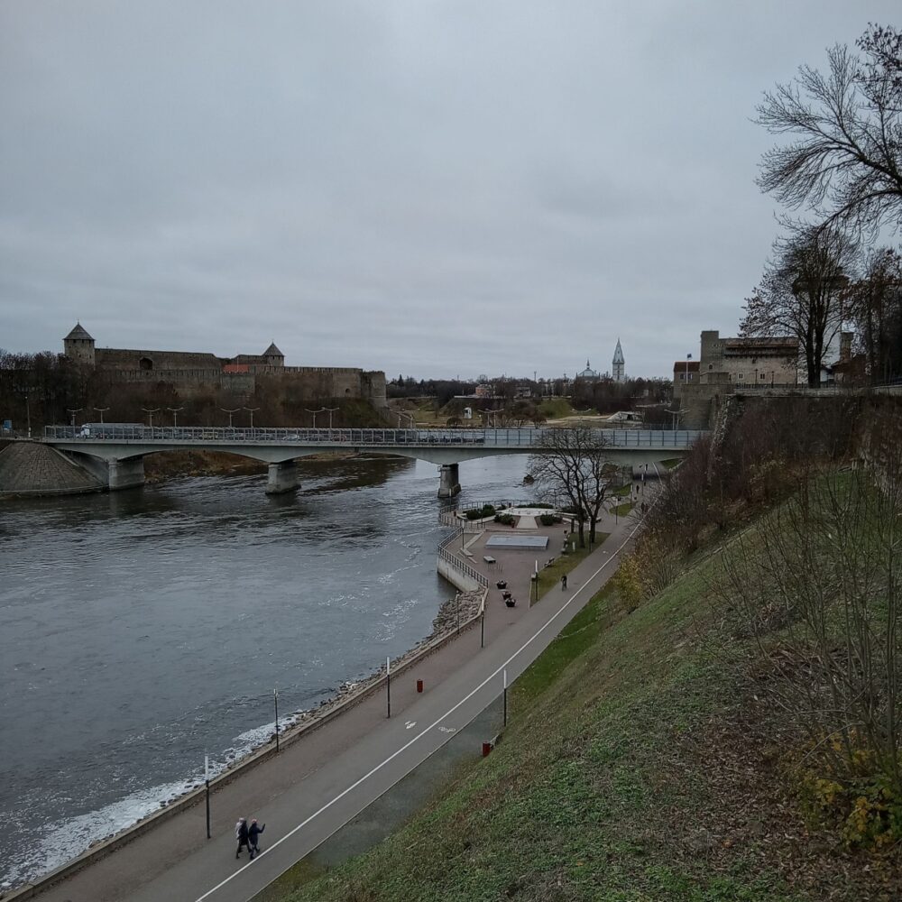 Nähtamatud piirid. Vaade Pimeaiast Narva jõele, sillale ja kindlustele. Narva