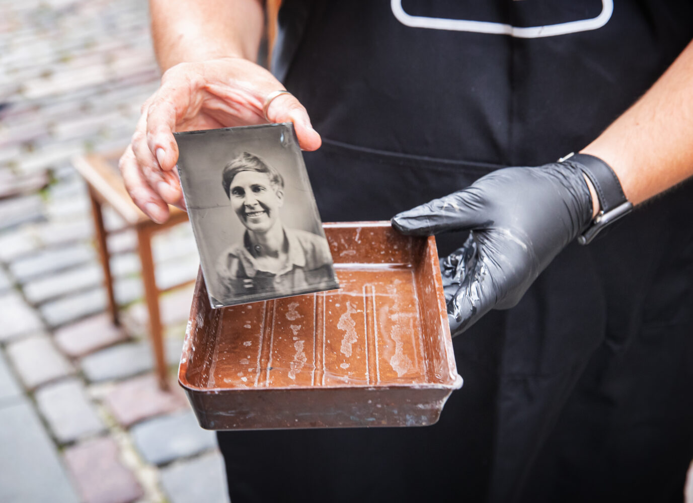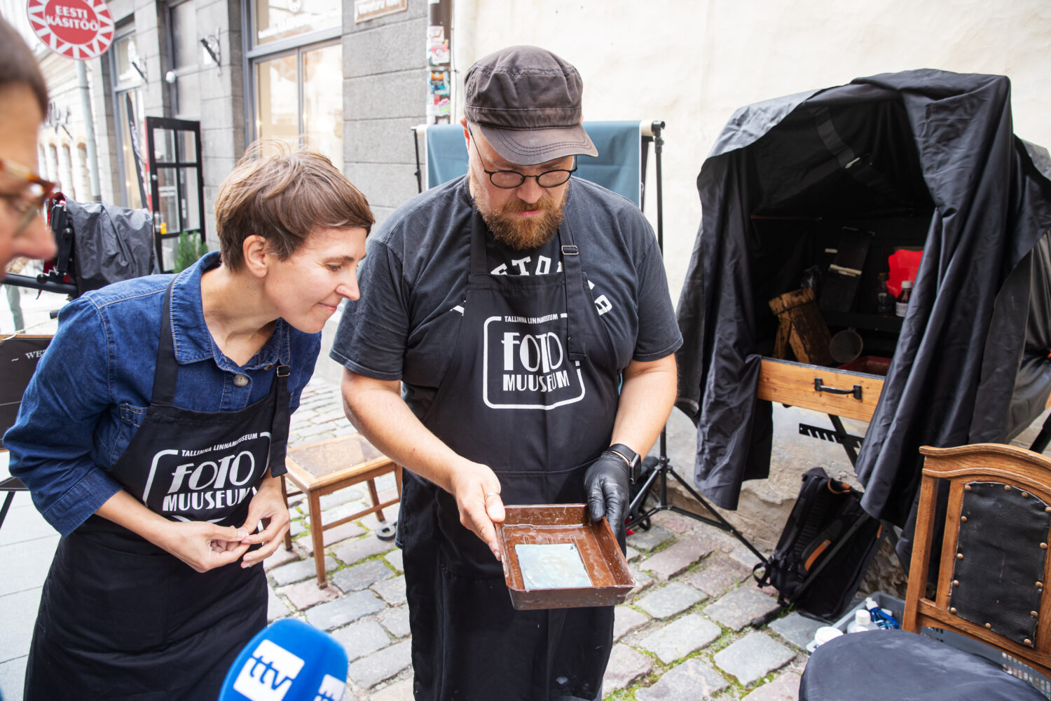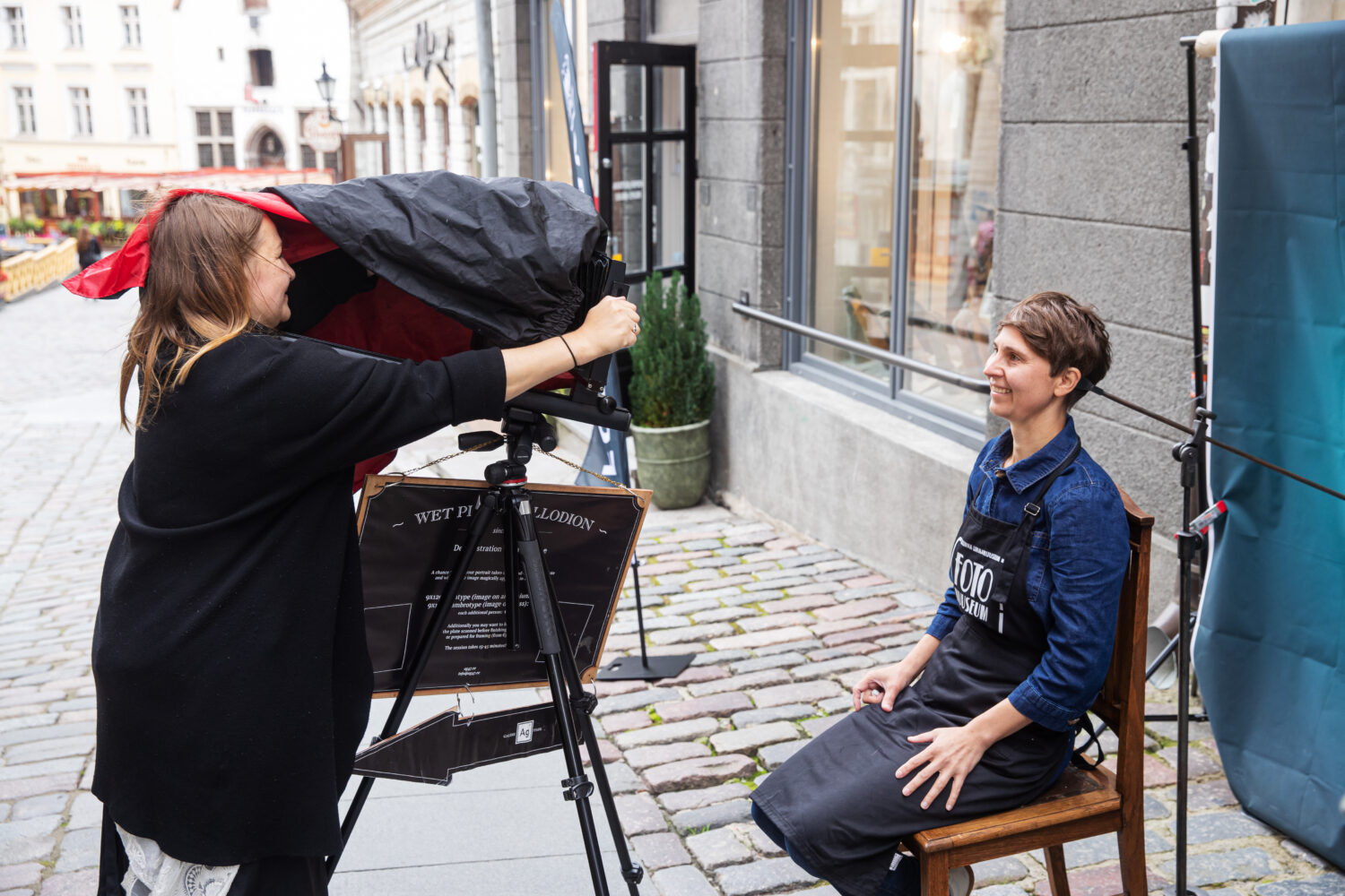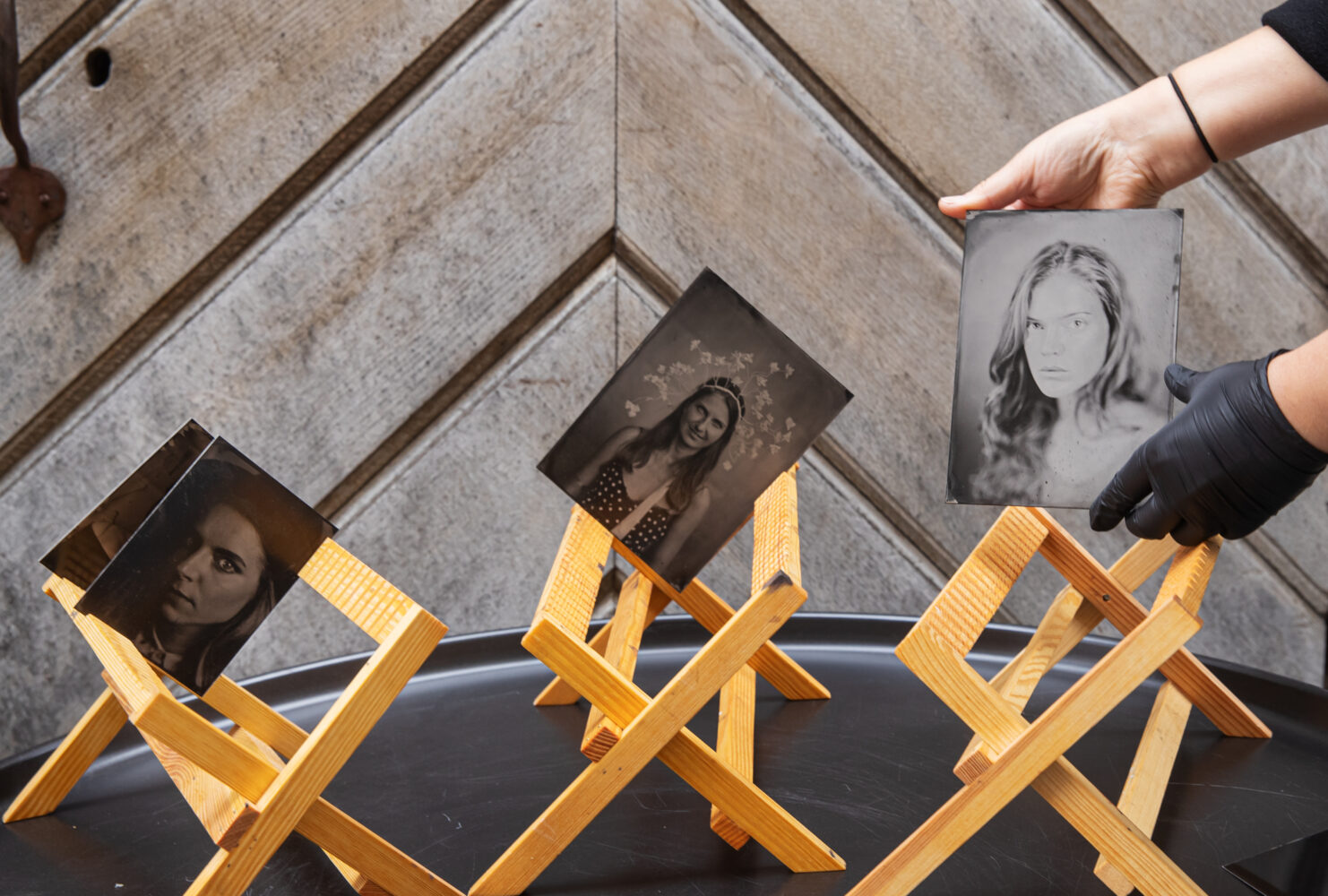 Ag47 piltnikud Jüri ja Käty Tarkpea fotografeerivad soovijaid plaatkaameraga, luues ajaloohõngulise portree ja kasutades selle valmistamiseks märgkolloodiummenetlust.