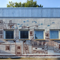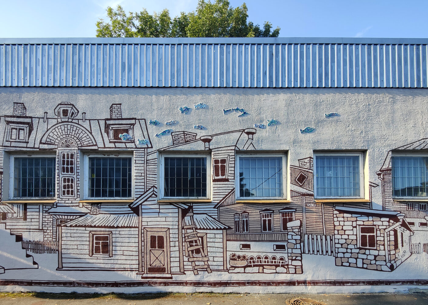 Töötoa kõrvalt valmis Vabriku 7 esifassaadile maaling Kalamaja majadest. Maalingut täiendati töötoas valminud klaasmosaiigist kaladega, kes paigutati maalitud majade vahele ning ustest-akendest-korstnatest sisse-välja lipsama.