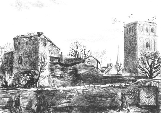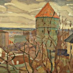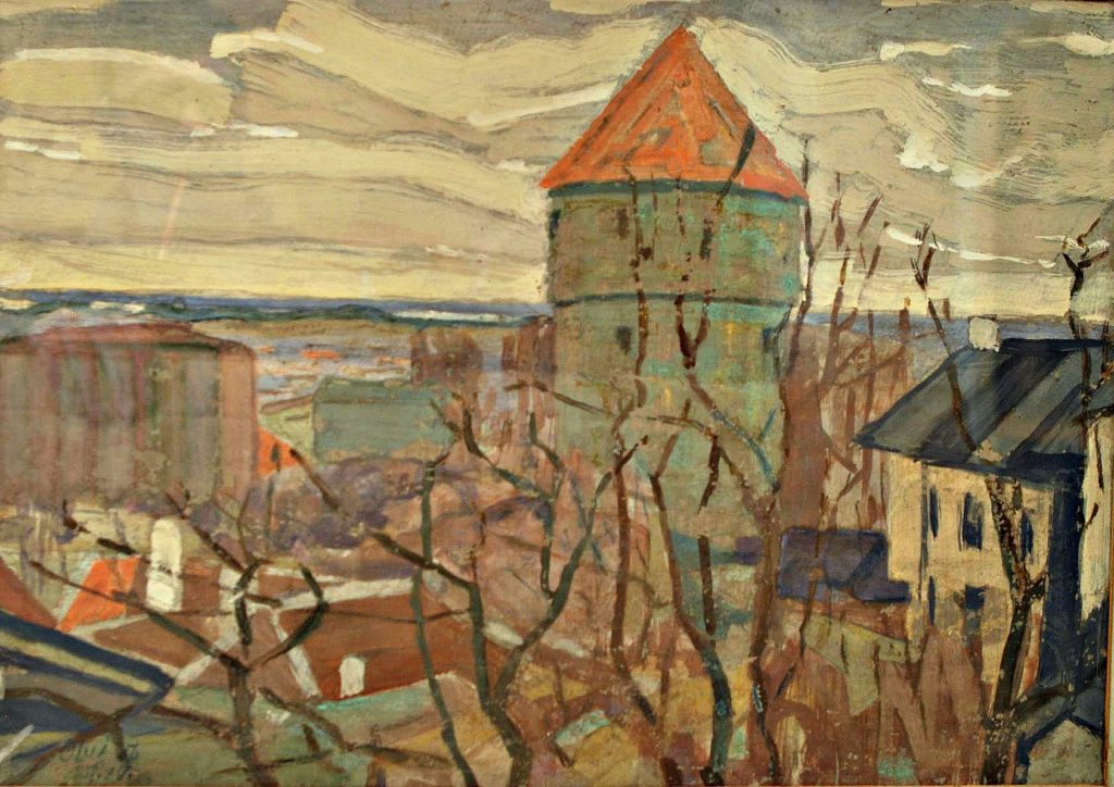 Henrik Olvi, vaade Kiek in de Kökile ja Neitsitorni kodule. 1956 (Tartu Kunstimuuseum)