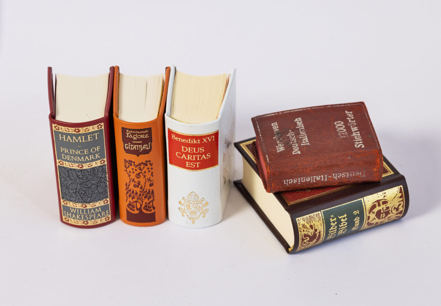 Kõrvuti eestikeelsetega on eksponeeritud veel seitsmes eri keeles kääbusraamatuid, ühtekokku 65 eksemplari. Vanim väljapandud eestikeelne kääbusraamat pärineb 1935. aastast aga pisimaks raamatuks on seitsmes eri keeles meieisapalveid sisaldav imetilluke trükis suurusega 5 × 5 mm.