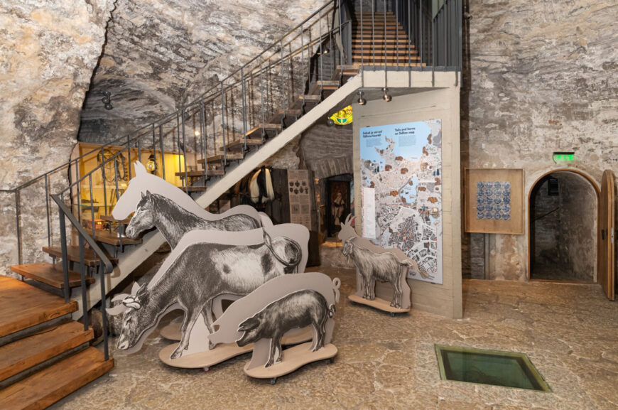 Kiek in de Köki kindlustustemuuseumi näitus “Linnaloom. Lehm, lutikas ja lohe Tallinna ajaloos” viib meid keskaegsele linnatänavale, kus näeb koduloomade elukäiku seasulust peolauani. Torni keldrikorrusel on avatud metsikute ja taltsutamata loomade maailm.