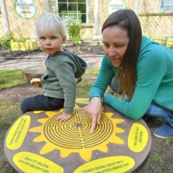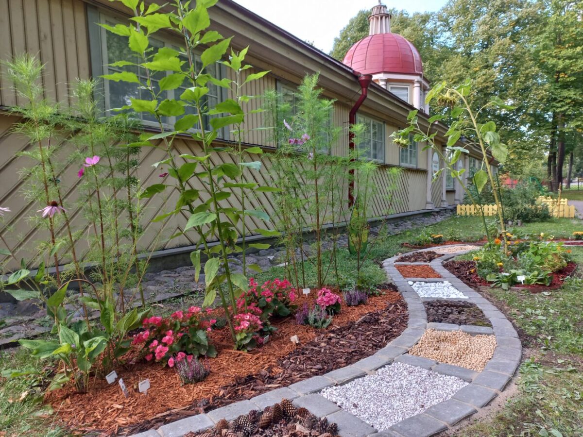 Meie õuel saab keerlema panna kompostikrõlli, puid emmata, liikuda sõrmega mandala-uuretes, jätta oma jälje jäljerajale või kõditada meeli sensoorsel rajal.