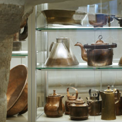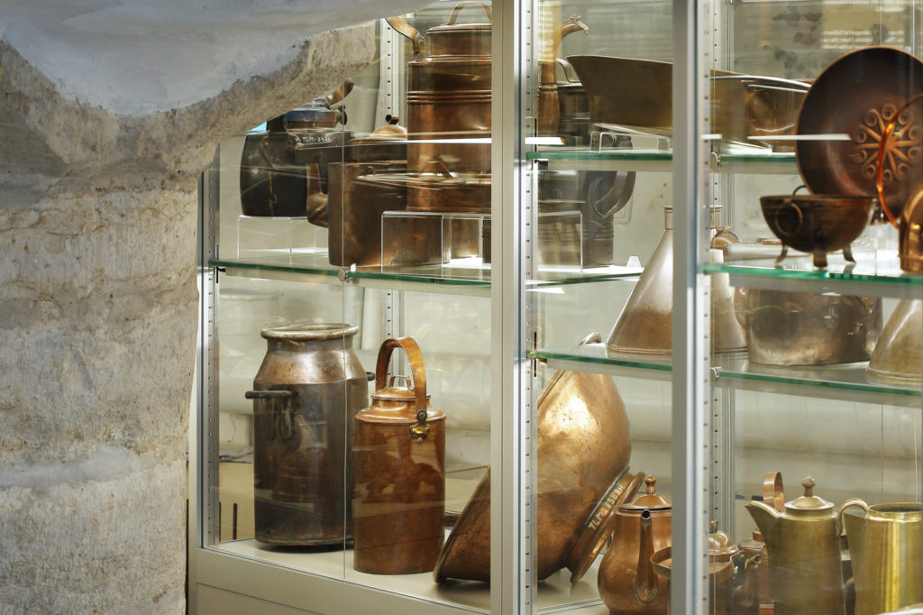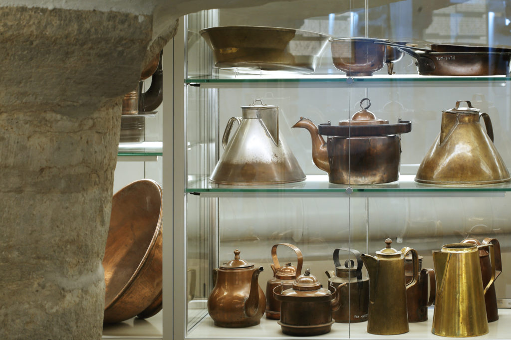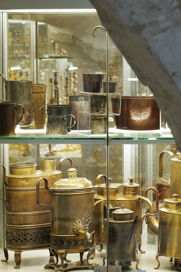enamiku moodustavad 19.-20. sajandi toidunõud, kuid väljas on ka 16.-20. sajandi küünlajalad ja -lühtrid, tsunftide korjanduskarbid, erinevail sajandeil kasutusel olnud mahumõõdud, samovarid ja Rahvakunstimeistrite koondise Uku vasknõud ja -suveniirid 1980. aastaist. Eraldi kollektsiooni moodustavad helistamiskellad, millest vanim – Mustpeade vennaskonna koosolekukell 1472. aastast on eksponeeritud hoopis kõrgemal korrusel, Mustpeade vennaskonna näitusel.