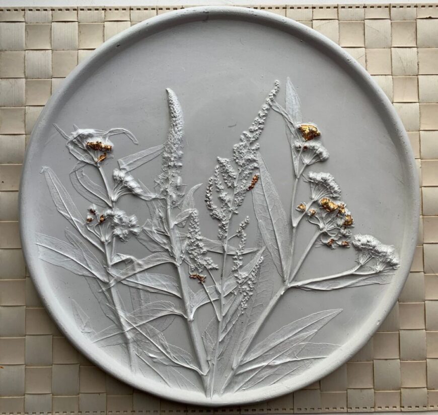 Botaaniline bareljeef kujutab endast kipspinnale tekitatud taimede mahulisi kujutisi. Need on saadud kipsi valamisega savivormi, millesse on vajutatud taimede jäljendid. Botaanilise bareljeefi kunst tekkis varajaste looduseuurijatest botaanikute traditsioonidest. See meetod tähendab loodusliku objekti pinna kui loodusliku pitseri kasutamist. Sarnaselt iidsetele kivististele kujutab kipsbareljeef iga õie ja rohukõrre struktuuri, tuues esile üksikasjade elegantsi.