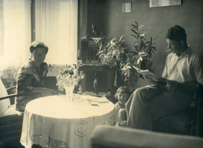 Helmi did so well that she bought a two-storey rental house with eight apartments on Noole street and the only two-room apartment became the home of Mati and his parents. It was the family’s duty to collect rent and keep the surroundings in order. Mati, too, had to take the hose to water the street so it would not generate dust, and had to pull weeds from the side of the street. The hardest job was cleaning out snow in winter and wheeling it into the yard. The heap of snow became a good place to sled, but there was not enough space to go far. The good order around the house was checked by a strict police official who even wrote tickets sometimes. In the yard, there were sheds where one of the neighbours kept goats. The people in the house were on friendly terms with each other. They went to each other’s birthdays and in 1955/56, when father bought the television set, everyone came to watch it. There were a lot of guests. For example, in the 1950s during the song and dance celebration, all the family members from Paide who were folk dancers stayed at their home, sleeping on the floor.