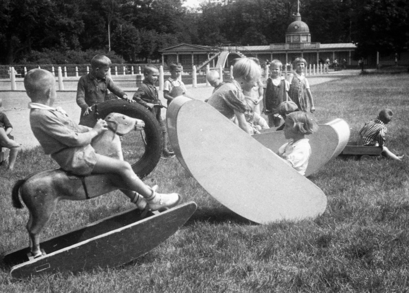 • открывающаяся между ворот галерея, заглядывая в мир детского парка, рассказывает с помощью фотографий его историю