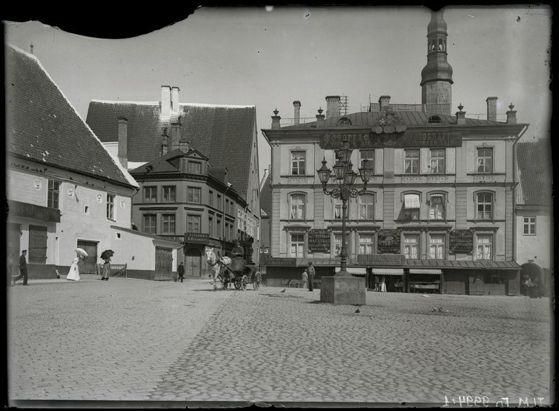 В центре фотографии — трехэтажный дом, где в конце XIX века располагалось ателье Бернарда Лайса, известного фотографа и основоположника репортерской фотографии в Эстонии (на фасаде здания видна реклама фотоателье). С левого края снимка виден фрагмент важни, которая была разрушена во время ночной бомбардировки 9 марта 1944 года. Координаты для поиска места 59.437537, 24.745517. Фотография из Музея фотографии.