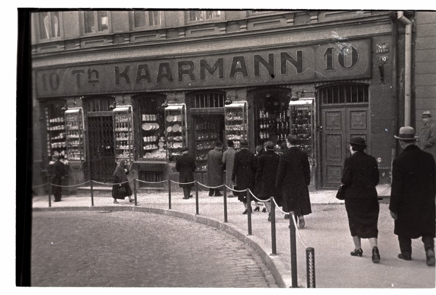 На фотографии виден фасад самого представительного дома торговли в Таллинне начала XX века. В этом, в то время новаторском, магазине товар распределяли по отделам исходя из материала и предназначения предметов быта. Отделом стекла, хрусталя и фарфора заведовал в начале своей карьеры Николай Лангебраун, который в последствии основал самое известное и высоко ценящееся производство фарфора в Эстонии. Выставку фарфора Лангебрауна можно посетить в Городском музее. Координаты для поиска места 59.436822, 24.745611. Фотография из Музея фотографии.