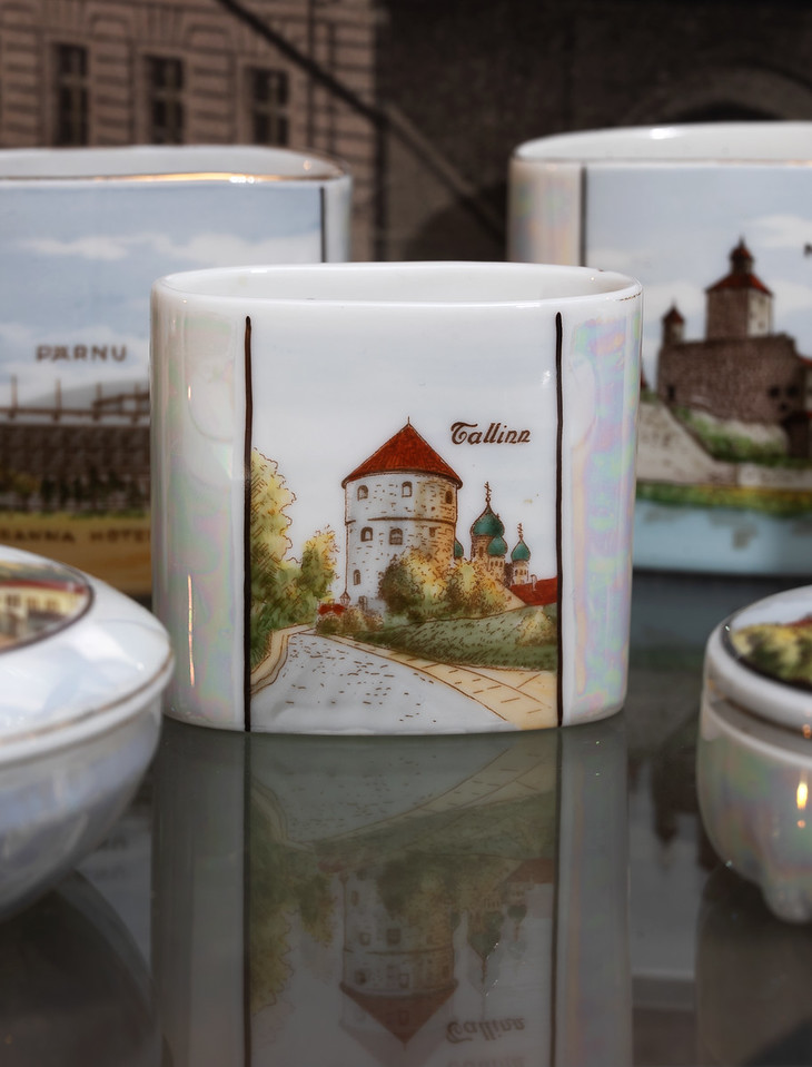 На выставке Городского музея «Коллекция и ее история. Фарфор Лангебрауна в частной коллекции Прийду Нымма» можно увидеть целую витрину с сувенирами из фарфора. Традиция покупать подобные изделия в подарок появилась в 1930-х годах. Найди сооружение, изображенное на вазе, и сфотографируйся на его фоне с того же ракурса. Башня является музеем, также открытым в Ночь музеев! Координаты башни: 59.434708, 24.741331