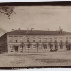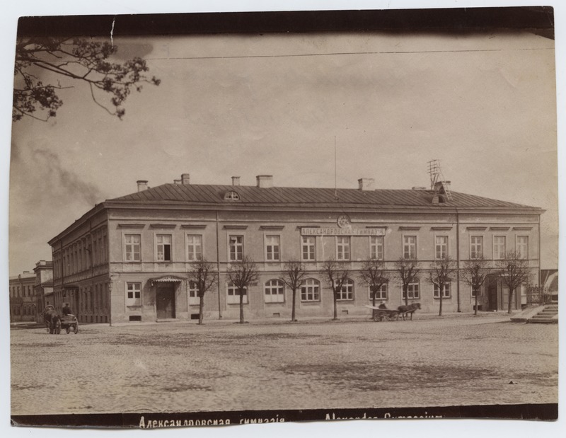 В 1872 году в этом здании открылась первая русскоязычная гимназия в Таллинне. Здесь на высшем уровне преподавался эстонский язык, а также выплачивались пособия ученикам из бедных семей. Какое название носила эта гимназия и где находится это здание сейчас? Координаты для поиска места 59.437606, 24.753709. Репродукцию можно увидеть на выставке в Таллиннском русском музее.