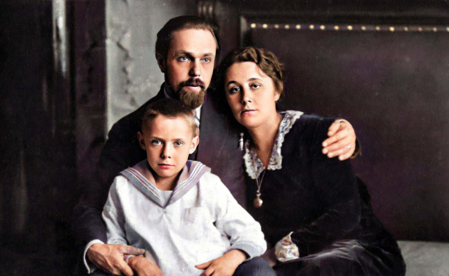Looži Kalevipoeg üks asutajaid Mihhail Janson, koos abikaasa Natalie ja poeg Olegiga, 1930. aastad.