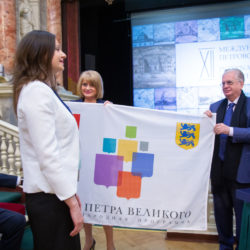 Eriauhinna – Peetrilinnade lipu – andsid Peeter I majamuuseumile üle Venemaa kultuuriministri asetäitja Alla Manilova ja Riikliku Ermitaaži direktor Mihhail Piotrovski.